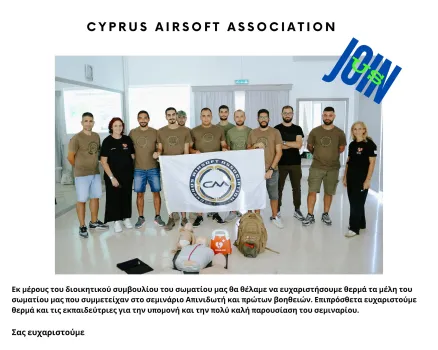 Εκ μέρους του διοικητικού συμβουλίου του σωματίου μας θα θέλαμε να ευχαριστήσουμε θερμά τα μέλη του σωματίου μας που συμμετείχαν στο σεμινάριο Απινιδωτή και πρώτων βοηθειών.